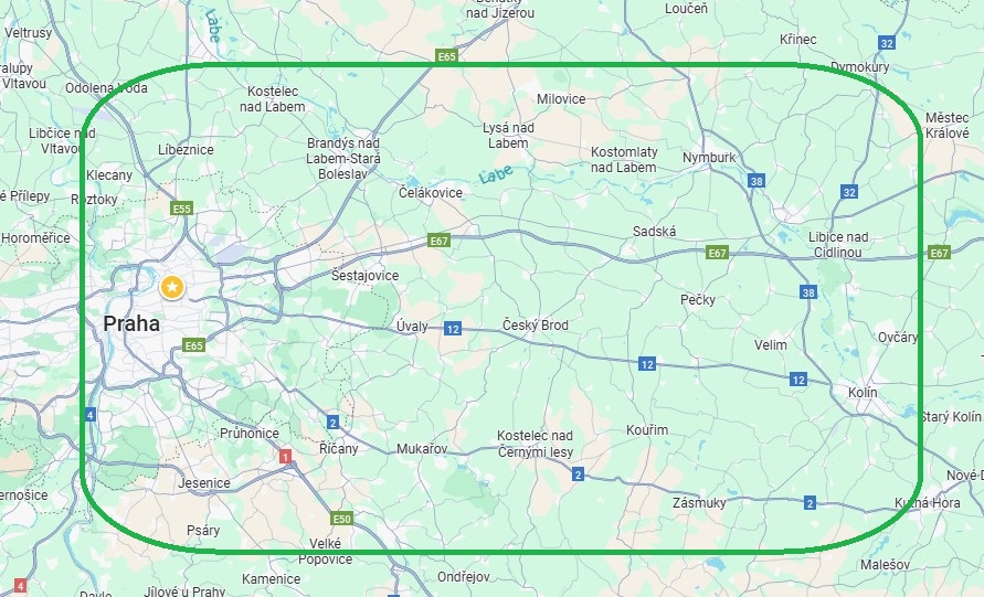 Praha - Říčany - Český Brod - Kolín - Kutná Hora - Nymburk - Poděbrady
